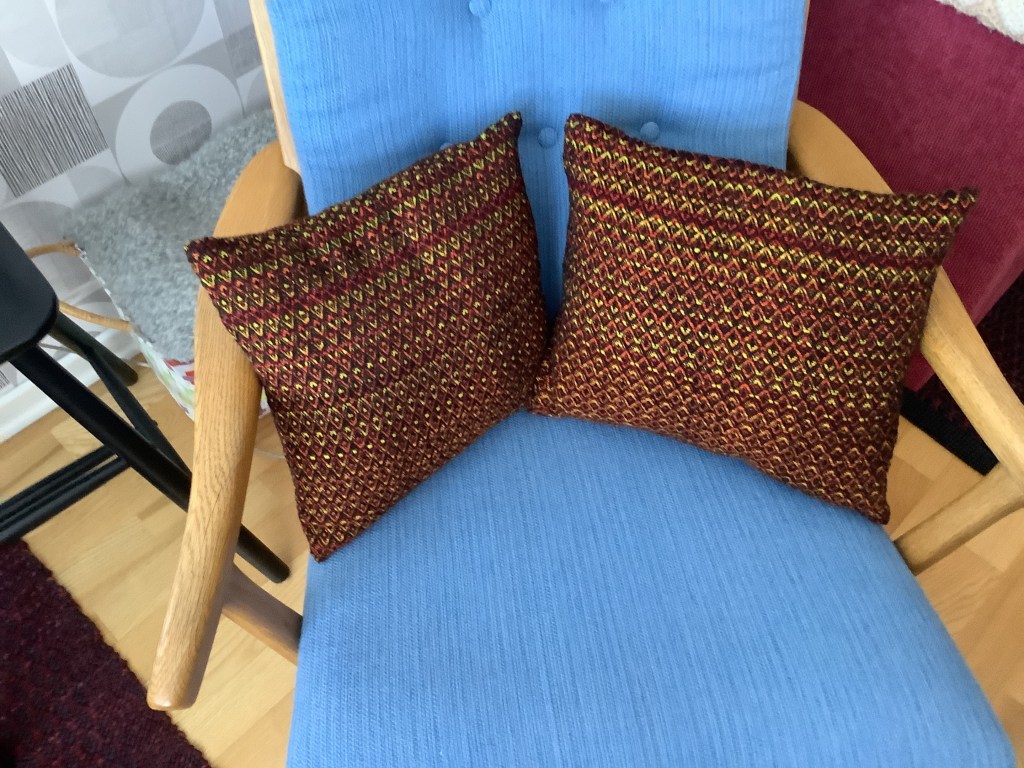 Före jul visade jag en väv på gång. Så här blev kuddarna