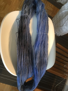 Gick en kurs i somras och lärde mig hur man varpar randigt på längden och hur man sätter upp och väver en rundväv (dvs ett rör).